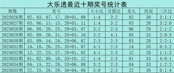 在2025035期中,开奖号码为:22、25、28、29、30 + 04、08,和值134,跨度8,区间比0:1:4,奇偶比2:3,大小比5:0,冷热比2:3,质合比1:4,012路比1:3:1。重号有2枚,分别是22和28,连号有1组,即28、29、30。