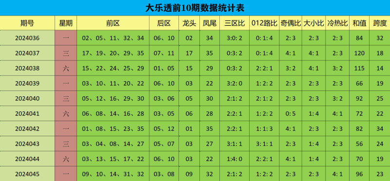 体彩大乐透第2024045期开奖号码:09、10、14、31、32+03、08。其中前区和值为96,奇偶比为2:3,大小比为2:3,三区比为2:1:2,开出0枚重号,2组连号09、10、31、32。后区为奇偶组合03、08。