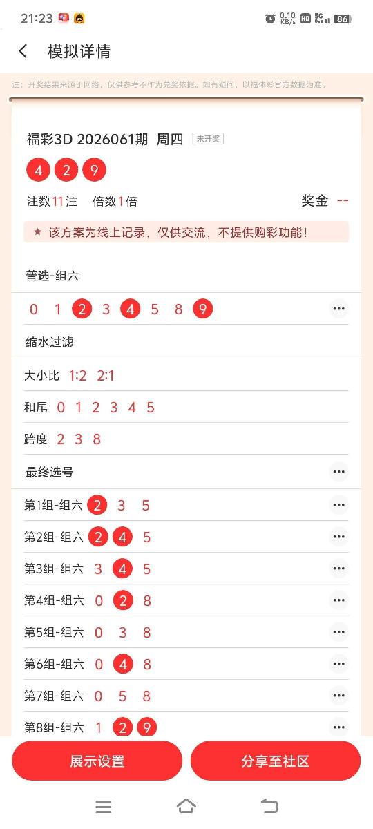 福彩3D绝刹一码(参考就行,一定要相信自己的判断) 050期刹一码7 开689 中 051期刹一码4 开302 中 052期刹一码4 开277 中 053期刹一码4 开755中 054期刹一码1 开217 错 055期刹一码5 开107 中 056期刹一码8 开477 中 057期刹一码0 开264 中 058期刹一码8 开543 中 059期刹一码6 开794 中 060期刹一码0 开943 中 061期刹一码2 开? 最近有点黑,参考就行,相信自己! 觉得有参考价值就点赞支持下,这个本来就概率的,并且都公式或者一些小技巧得出的结果。有对有错也正常塞。更多精彩组合分析内容进入彩虹号查看3D更多组合胆码分享!感谢支持!!!
