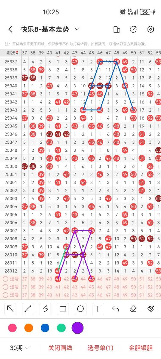 41-43选一,这里一定要有做,08-09-10-12这里选二,主胆10,02-34选一,18-23-25选一。今天看好0-2-4头。这两个三角形下面最好别做号,估计没号,或者下面最多一个号!温馨提示一下,6头会跟7头那样,热四期转冷,7头这期不确定,可能一两个号,可能爆区回补。如果7头不爆区,估计就是0头爆。