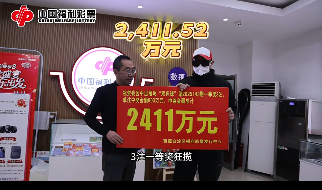 西藏彩民揽双色球2411万元大奖,系当地2025年首个千万级福彩大奖 12-19 435阅读