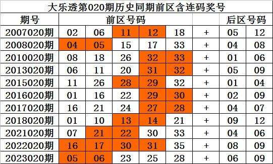 4。连号分析:历史同期连码出现了11次,表现相对活跃,本期预计继续开出连码,参考号码01 02。