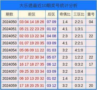 开奖回顾:大乐透第2024059期奖号:17、18、20、25、31+03、12。其中奇偶比为3:2,三区比为0:3:2,开出1枚重号20。