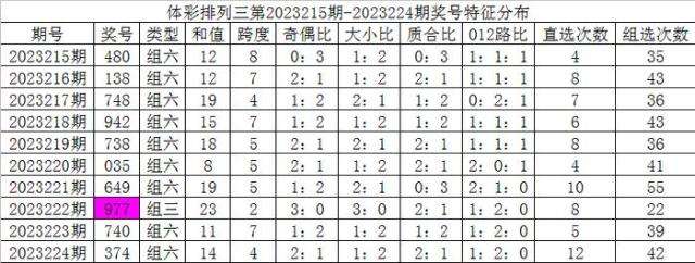 开奖公告:体彩排列三第2023224期开出奖号:374。组六,有重号:4、7,奇偶比2:1,大小比1:2,012比1:2:0,和值14,跨度4。