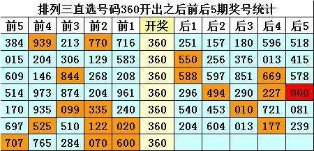 四、排列三直选号码360历史上开出7次,其前后五期奖号分别为: