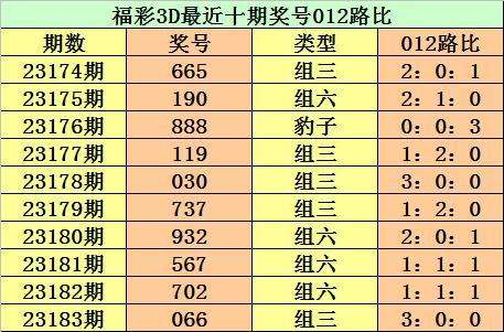 开奖回顾:第2023183期3D奖号为066。形态:组三,奇偶比0:3,大小比2:1,012路比为3:0:0。