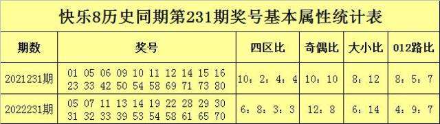 万妙仙快乐8历史同期第231期奖号基本属性分析