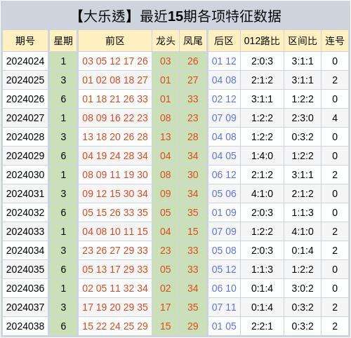 上期回顾:大乐透2024038期开出奖号:前区15、22、24、25、29,后区01、05。