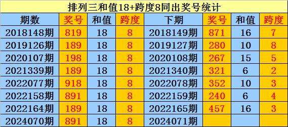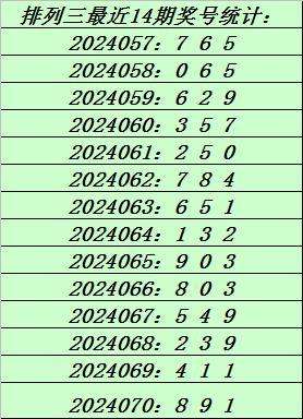 上期回顾:排列三第2024070期奖号:891。和值18,跨度8。