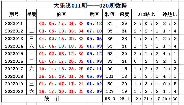 021期知荣大乐透预测奖号:012路号码和值跨度