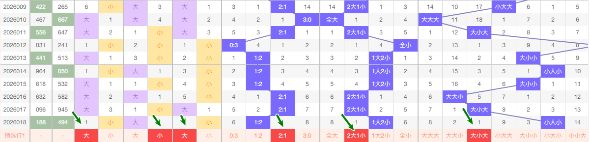 最近的5期当中十位大数出现的频次3次 小数出现2次 ,趋势平和 本期看好走大