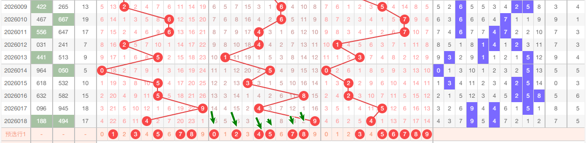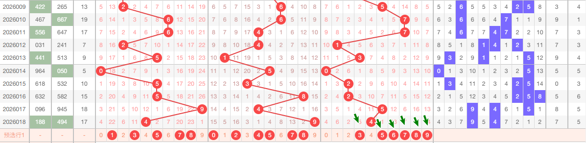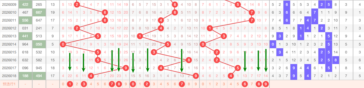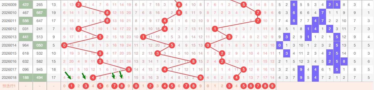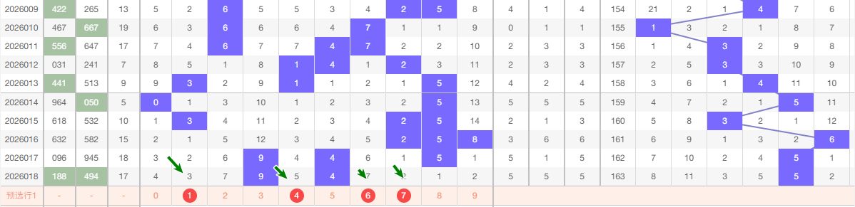 上期跨度5跨 2路跨 从上图看 本期主1467 防2跨 供大家参考