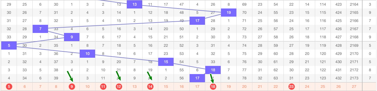 本期看好 范围5-23 之间定和值9-12-14-18从图上来看近5期的和值 5 10 15 18 17 10 1路和值 15 18 0路和值 5 17 2路和值本期看好0路和值参考 这五期和值波动不大 下期防守大波动