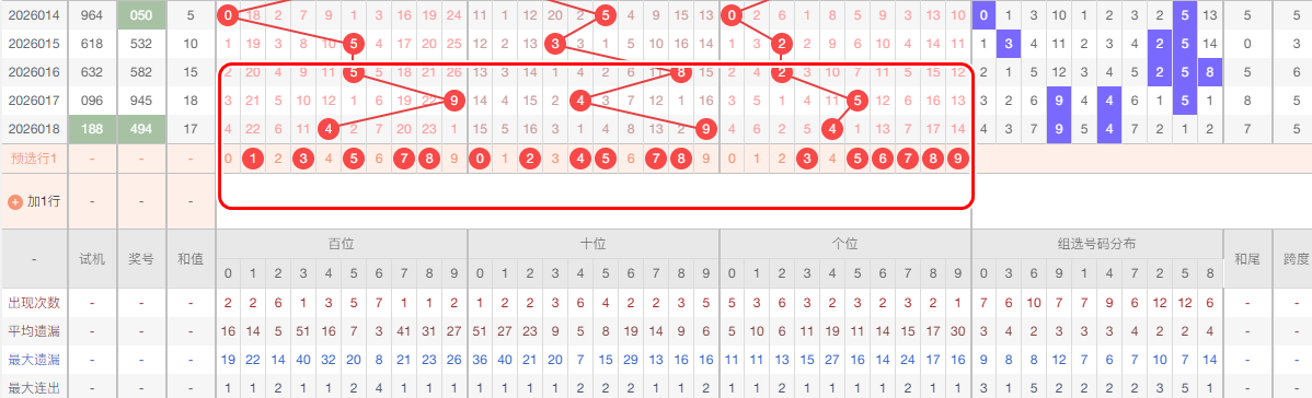 上期 百位出了一枚冷码4 十位出了一枚冷码9 个位出一枚冷号4 开出01路组三 和值 17 下期继续要关注出一枚冷号 可以继续关注01号组合