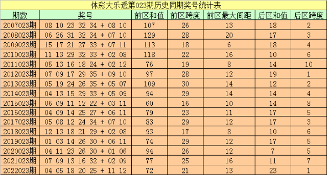 袁大爷第2023023期体彩大乐透历史同期奖号分析: