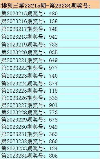 开奖回顾:排列三第2023234期开出奖号:805。其中奖号大小比为2:1,奇偶比为1:2,012路比为1:0:2,和值为13,跨度为8。