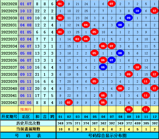 后区分析:后区上期开出2路和0路奖号02和06,最近20期后区奖号012路比为14:14:12,最近两周后区奖号012路比为6:1:5本期后区注意号码05、07、09、11、12,单挑两码注意0路号和2路号09、11。