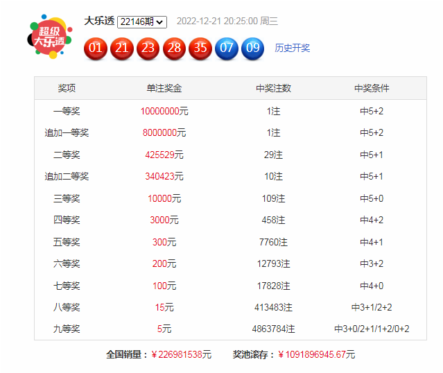 大乐透第2022146期奖号开出:01 21 23 28 35 + 07 09,各位奖号遗漏期数分别为:6期、1期、11期、22期、0期+1期、0期,前区遗漏总值为40期,冷温热码个数比为2:1:2。