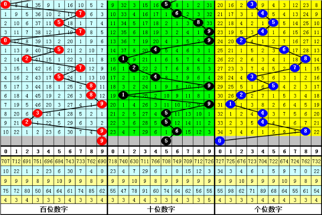 二、福彩3D上期开出奖号968,奖号大小比为3:0,大小类型开出【大大大】,该类型组合奖号在前9次分别开出号码:579-877-578-689-787-977-875-585-895;
