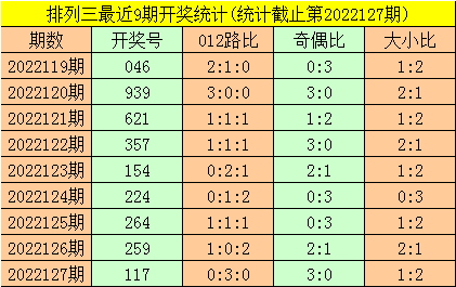 上期回顾:排列三第2022128期开奖号码为843。奖号类型为组六,奇偶比为1:2,大小比为1:2,跨度为5,和值为15。