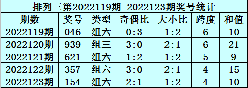 组选类型判断:最近5期排列三开出3次组六号码,本期重点关注组六号码出现。