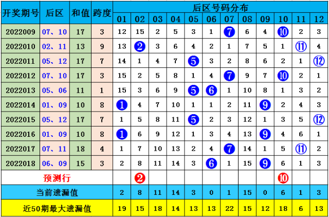 后区分析:大乐透后区上期开出偶奇组合,跨度为3。近10期后区奇偶组合出现5期,偶奇组合出现2期,奇奇组合出现3期,偶偶组合出现0期,本期预计偶偶组合回补;近10期后区两码跨度1-5开出5次,6-11开出5次,预计本期后区两码跨度为8,两码综合推荐:02、10