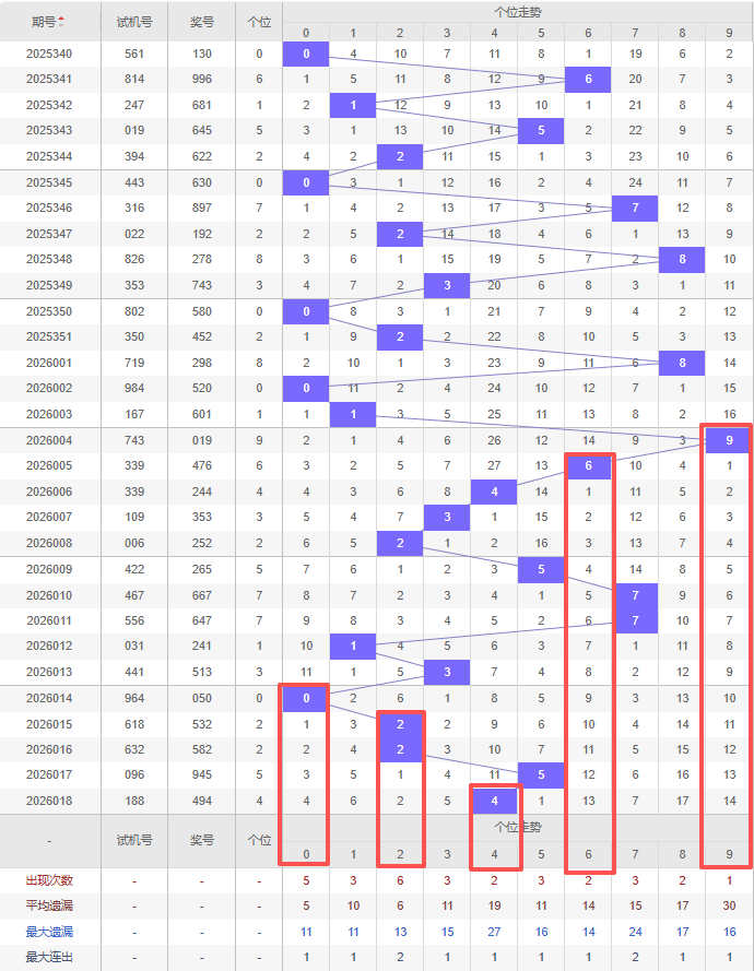 上期个位:4,近10期个位出号:5 7 7 1 3 0 2 2 5 4。最近10期大小变化分别:大大大小小小小小大小,奇偶变化分别:奇奇奇奇奇偶偶偶奇偶,质合变化分别:质质质质质合质质质合,根据近10期规律本期综上所述个位出号推荐5个号码:0 2 4 6 9。