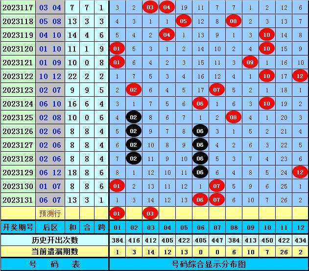 后区分析:后区上期开出0路+1路奖号06和07,最近20期后区0路奖号开出13个,1路奖号出现17个,2路奖号出现10个,最近8期后区0路奖号出现7个,1路奖号出现4个,2路奖号出现5个,本期后区注意号码:01、02、03、10、11,单挑两码组合01+03。