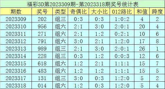 上期回顾:福彩3D第2023318期开奖号码为014,组选类型为组六,奇偶比为1:2,大小比为0:3。