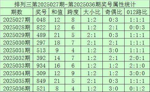 上期回顾:排列三第2025036期开奖号:521,奖号和值:8,奇偶比3:0,大小比1:2。
