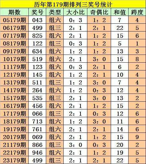 历年第179期奖号中:组三开出7次,组六开出12次。组三、组六基本相当,本期关注组六。