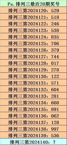 第2024139期排列三奖号为536,历史上该号码组选开出38次,下期奖号分别为:155、747、228、772、330、896、311、458、619、840、845、519、091、493、587、466、870、368、806、433、032、633、744、291、589、391、344、103、693、997、158、630、533、883、094、860、808。