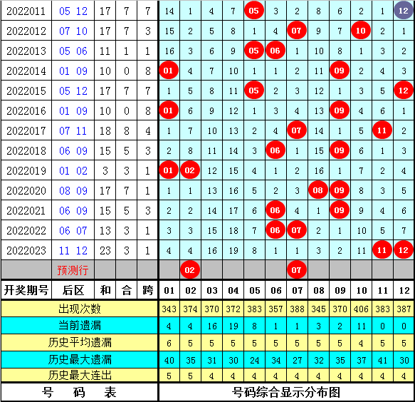 二号球分析:在第024期历史同期开奖中,二号球分布在02-31之间,号码012路比为4:3:8,其中0路号码:12出现2次,06、15出现1次;1路号码:16出现2次,31出现1次;2路号码:11、14出现2次,02、05、17、23出现1次,目前1路号码遗漏3年,今年同期排除1路号码,参考2路号码17。