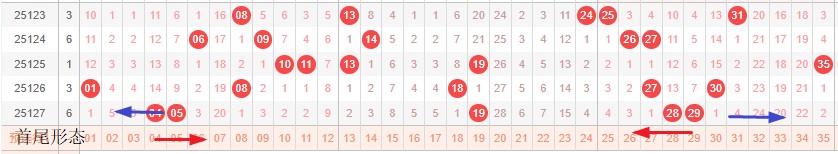 如图所示:首尾制约平衡组范围依次为:推推推,推缩? 本期形态范围优先选择蓝色拉伸首尾。由于上期号码处在首尾换4然后中间右推本期交换首尾移动空间连续分割形成间隔1正在重复走势预计本期继续形成走势,本期宜采取继续右推走势常规起号,或体现2连多重或者重号带0连。