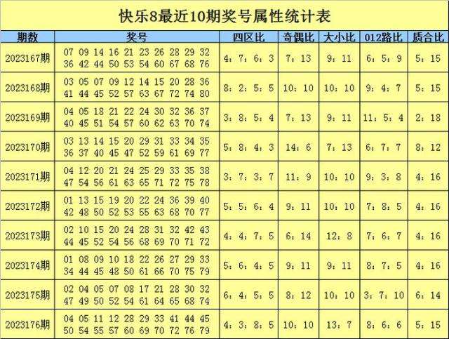 福彩快乐8第2023176期开奖回顾:04 05 11 12 28 29 33 41 44 45 50 54 55 57 60 69 70 72 76 79,其中尾数0、4、5、9分别包含3个号码,尾数1、2分别包含2个号码,尾数3、6、7、8分别包含1个号码。