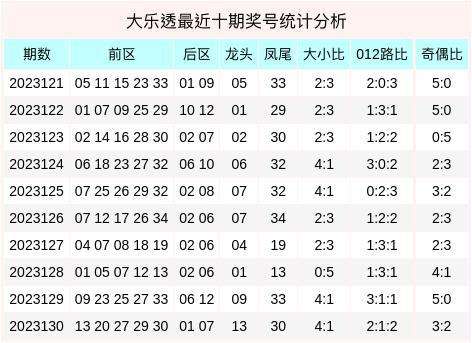 大乐透最近十期奖号统计分析