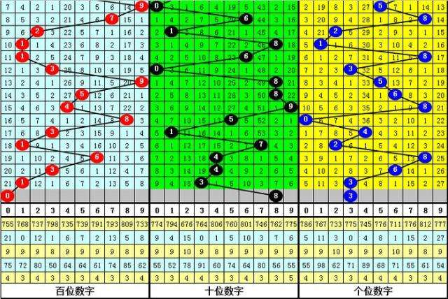百个位合:前10期百个位两码合开出:6、4、1、2、8、7、3、4、9、4,其中百个位两码合012路比为3:5:2,奇偶比为4:6,本期看好百个位两码合开出奇数,注意两码合3、5、7。
