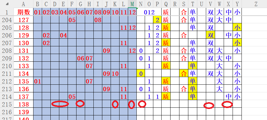 如上图4,012路分析012路,本期重点12路。重点 03 04 06 10 12