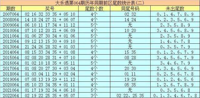 历史上大乐透第064期开出16次奖号,本期第2023064开奖: