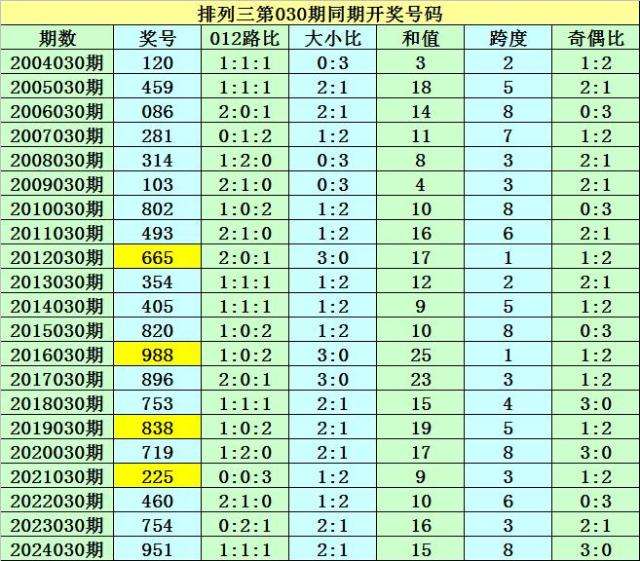 号码012路比:第030期历史同期号码012路比为24:16:23,本期预计012路比开出1:1:1。