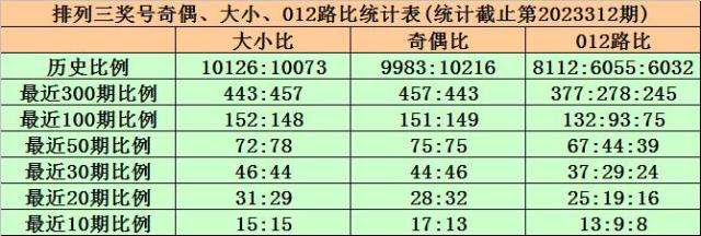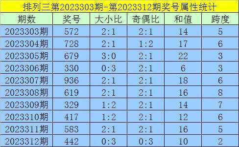 上期回顾:排列三第2023312期出现奖号442。开出组三,奇偶比0:3,012路比0:2:1,大小比0:3,和值10,跨度2。