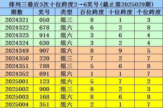 第2025001-第2025003期奖号:123、900、168,其下期奖号为:351,中位号码跨度为2;