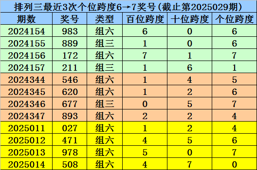 第2025011-第2025013期奖号:027、471、978,其下期奖号为:508,末位号码跨度为4;