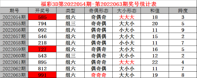 开奖回顾:福彩3D第2022063期奖号为991,奖号类型开出:组三、大大小、奇奇奇,和值为19。