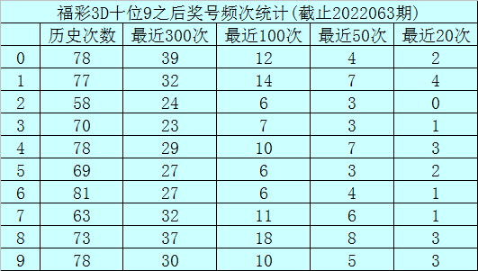 十位杀号:上期十位奖号为9,历史上十位奖号9共出现726期,前100次十位开出奖号9时,其下期0-9奖号频次分别为:奖号8开出18次,1开出14次,0开出12次,7开出11次,4、9开出10次,3开出7次,2、5、6开出6次。