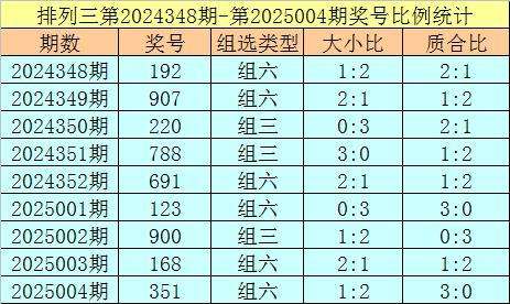 上期回顾:排列三第2025004奖号开出351,奖号质合比为3:0,大小比为1:2,跨度为4,类型为组六。
