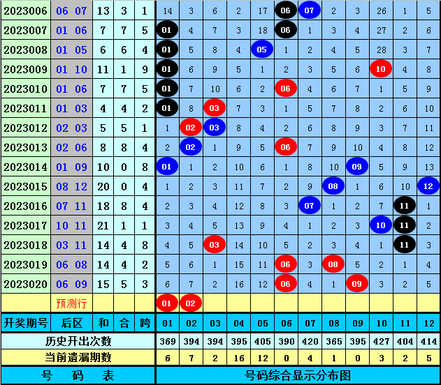 后区分析:上期后区开出全0路奖号06+09,最近10期后区奖号012路比为9:4:7,本期看好开出1路号码和2路号码,两码关注01、02。