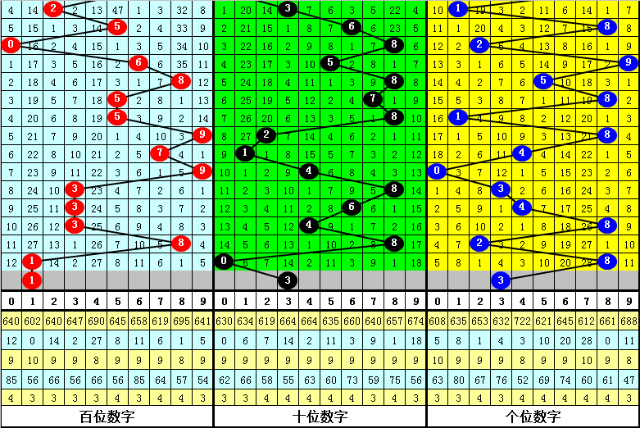 百位:上期开出1,近10期012路比为5:2:3,其中1路号遗漏5期再出,本期防1路号再出,参考1。