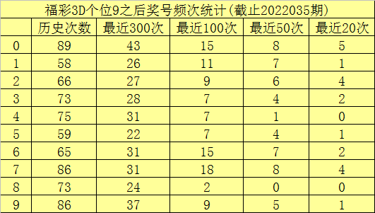 个位杀号:上期个位奖号为9,历史上个位奖号9共开出731次,最近100次个位奖号9出现时,其下期号码0-9开出次数分别为:奖号7开出18次,0、6开出15次,1开出11次,2、9开出9次,3、4、5开出7次,8开出2次。