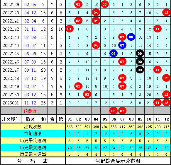 后区分析:在第002期历史同期开奖中,后区和值分别开出17、22、15、17、8、15、18、8、16、16、20、7、8、9、20、16,本期后区和值注意奇号,一码和值参考13。